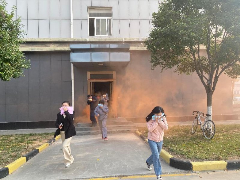 培訓(xùn)后,按照安排安環(huán)部迅速組織各部門安全員、新員工、保安保潔及餐廚人員40多人在辦公樓展開(kāi)滅火逃生演練,隨著一聲“著火了”大家有序左手用濕毛巾捂鼻口右手摸著墻冒著煙霧快速?gòu)霓k公樓逃生門魚(yú)貫而出。